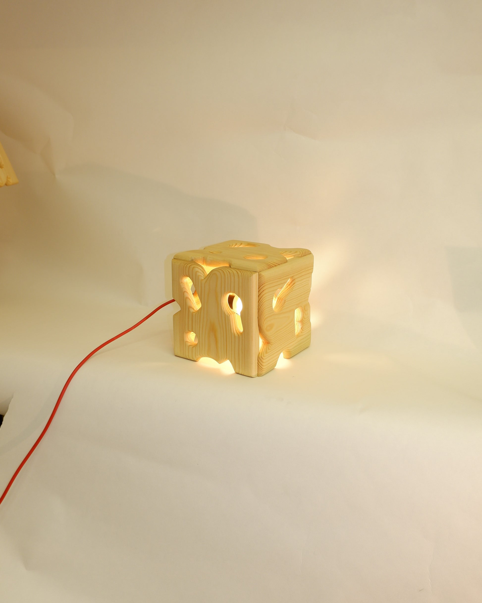 Designing to catch all the tones of the Redwood construction and bounce the light around the room in the collaged shapes cut out from the timber. Playful, soft and a real highlight to any room.