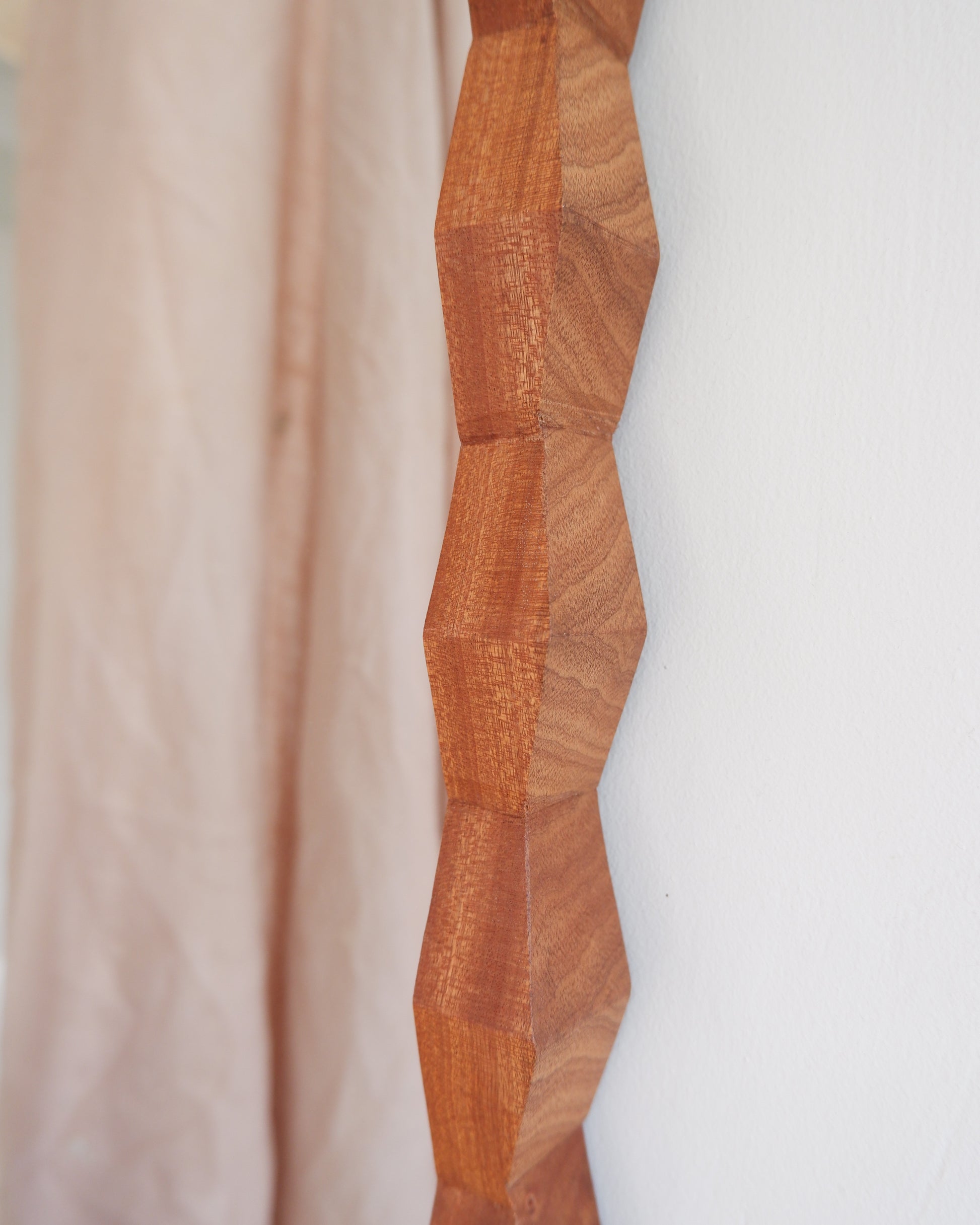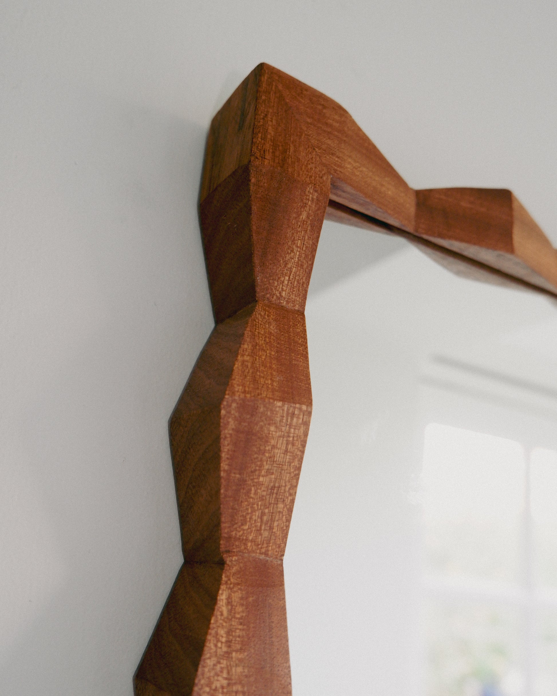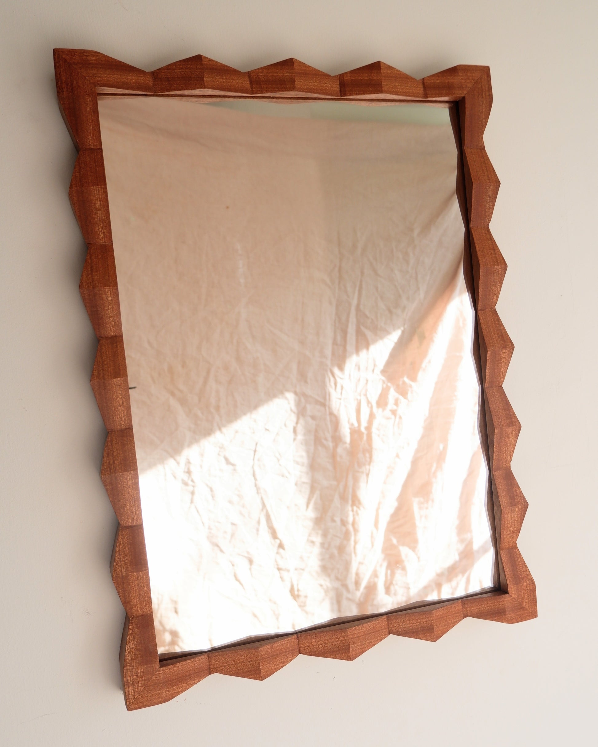 Introducing the Brancusi Mirror. Hand carved from Sapele by Josh. This is a nod to the bold and geometric work of Artist Brancusi.